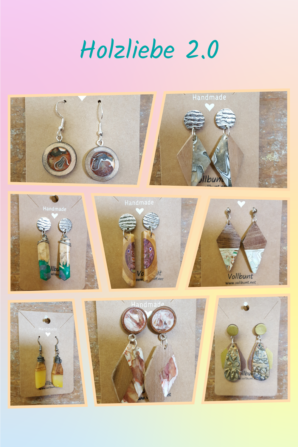 Diese kunstvollen Statement-Ohrringe sind ein echter Blickfang! Jeder einzelne Anhänger ist von Hand gefertigt und erzählt durch seine abstrakte Struktur und schimmernden Farben eine eigene Geschichte. Die Kombination aus Polymerclay oder Harz mit Holz verleiht diesen Ohrringen einen Hauch von Boho-Glamour mit rustikalem Charme.