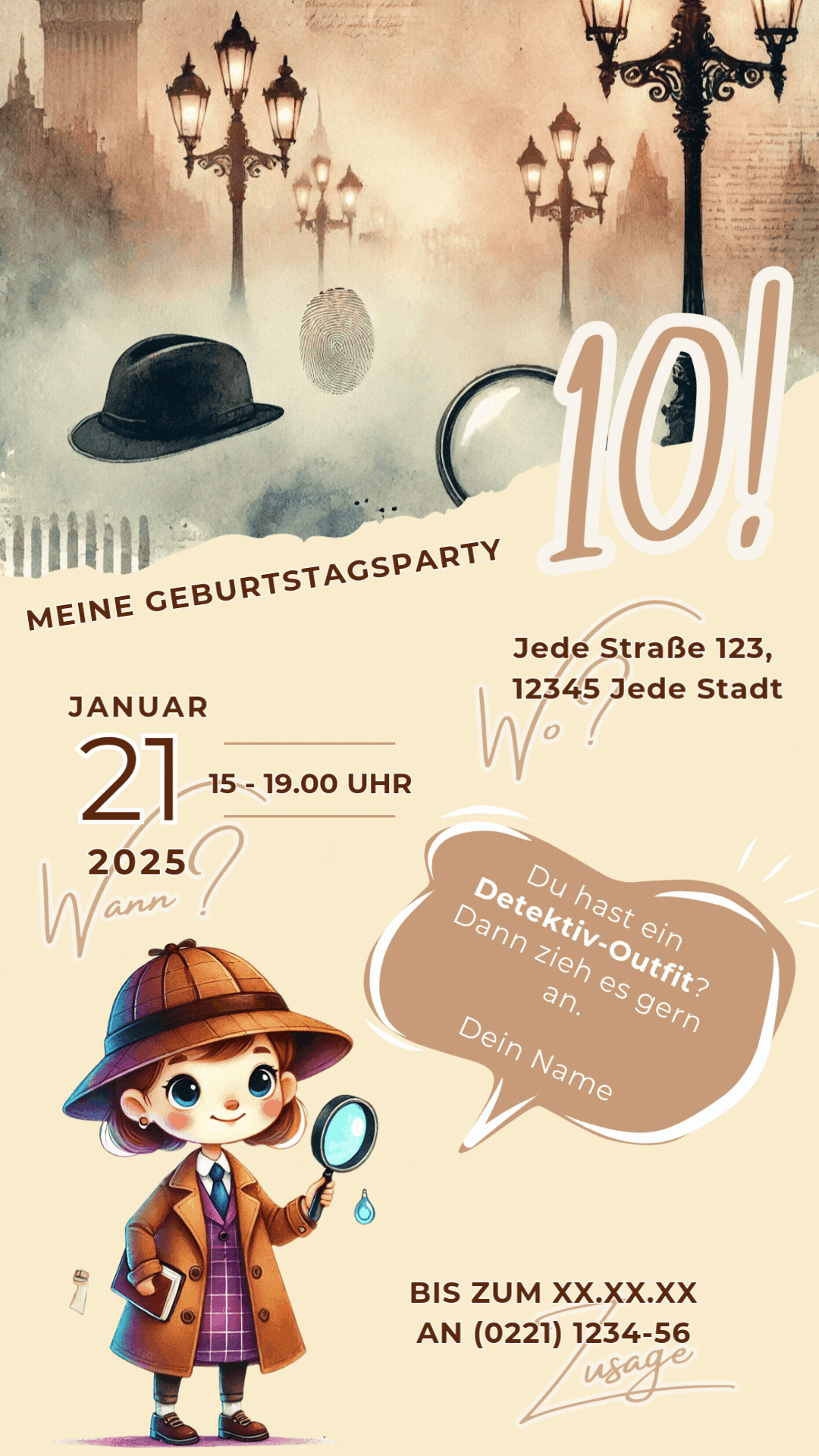 Einladung, Einladung Detektiv, Einladung Detektivin, Dekoration, Spiele&Basteleien, Rezepte