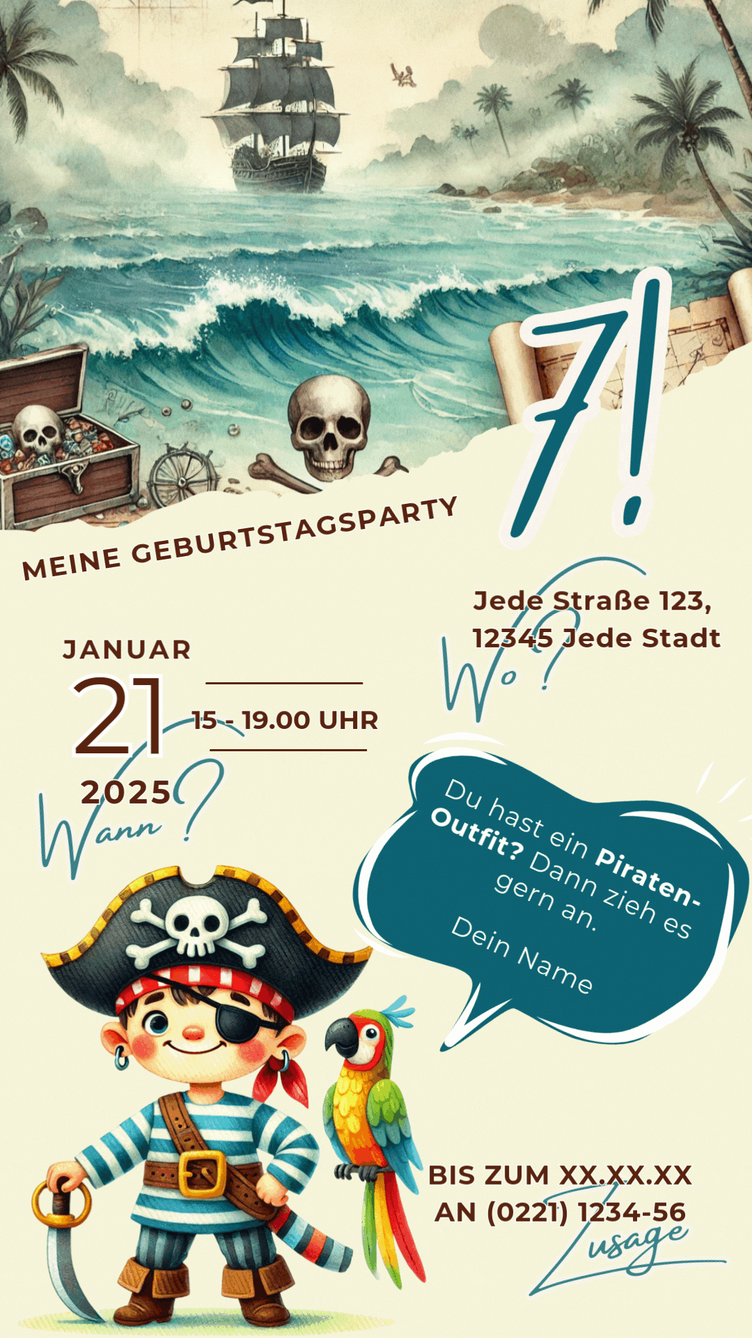Einladung, Einladung Pirat, Einladung Piratin, Dekoration, Spiele&Basteleien, Rezepte