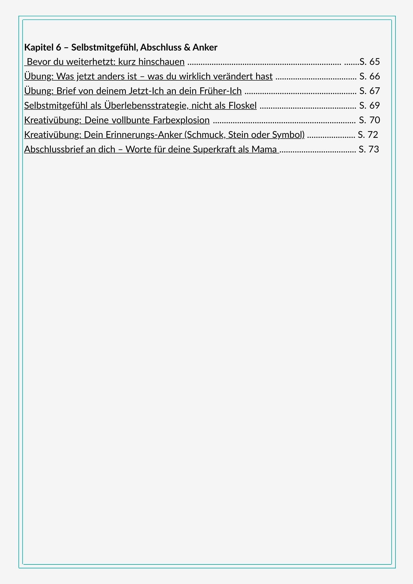 Dieses Workbook ist ein Selbsthilfe- und Reflexions-Tool und ersetzt keine ärztliche Diagnose, Psychotherapie oder Medikation.